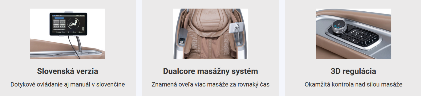 AKCIA! Skutočné 3D kreslo so skenom tvaru postavy, 24 automatických programov, 6 druhov techniky masáže, dotykové ovládanie v SK jazyku, plynulé regulovanie 3D sily masáže, reflexná masáž chodidiel, el. polohovanie aj vysúvanie nôh
