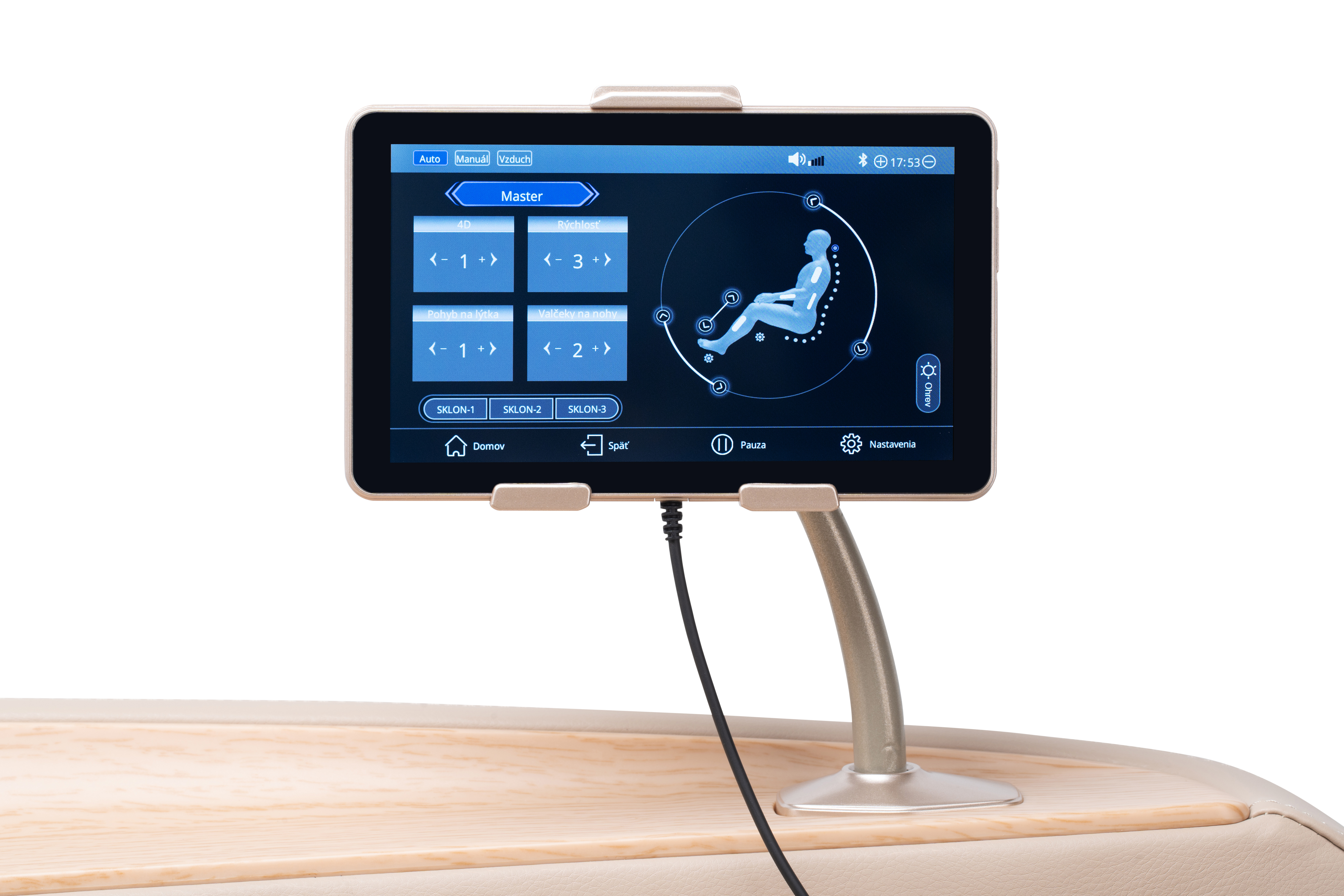 Najlepšie parametre a masáž v tejto cenovej kategórii, 12 auto programov, 6 masážnych techník, dotykové ovládanie, regulácia intenzity hlavíc a tlaku vankúšov, reflexná masáž, Zero-G, bluetooth repro, vyhrievanie